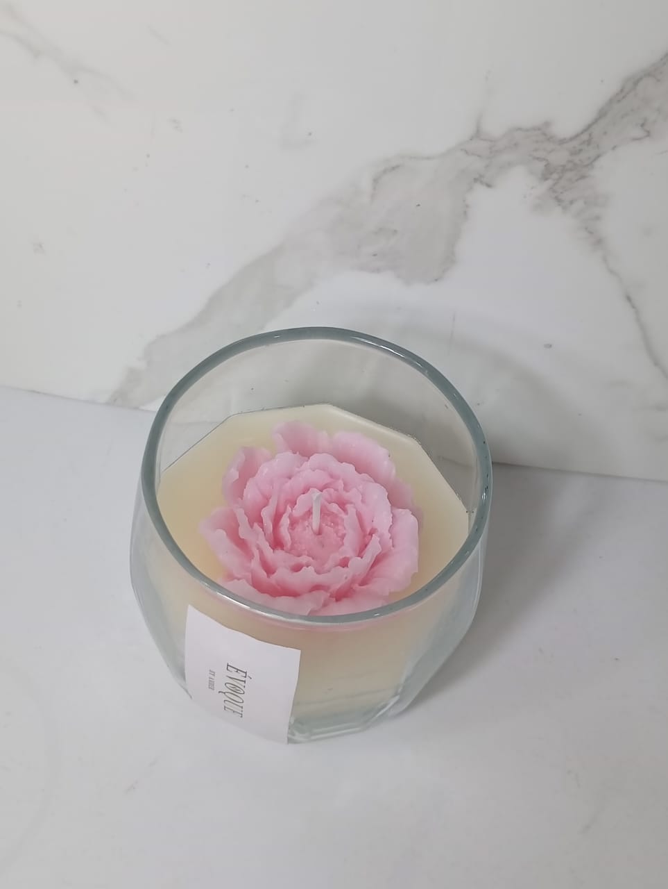 The Évoque Bloom Candle Experience the art of light with our signature floral-infused candle. Centered within a minimalist glass vessel sits a meticulously sculpted pink peony, hand-poured to capture every delicate petal. As the flame glows, the wax flower softens, releasing a gentle, airy fragrance that transforms your space into a serene sanctuary. Simple, elegant, and timeless.